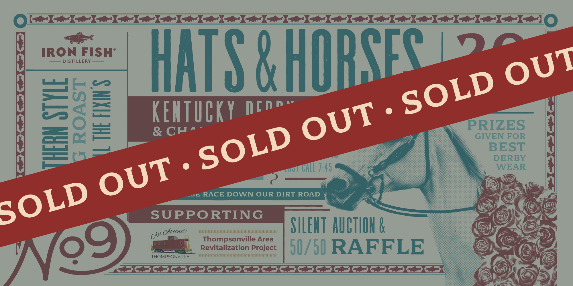 Saturday | 05.02.2026 | 3:00–8:00pm – Iron Fish Distillery 9th Annual Hats & Horses Kentucky Derby and Fundraiser for Thompsonville Area Revitalization Project. The Two