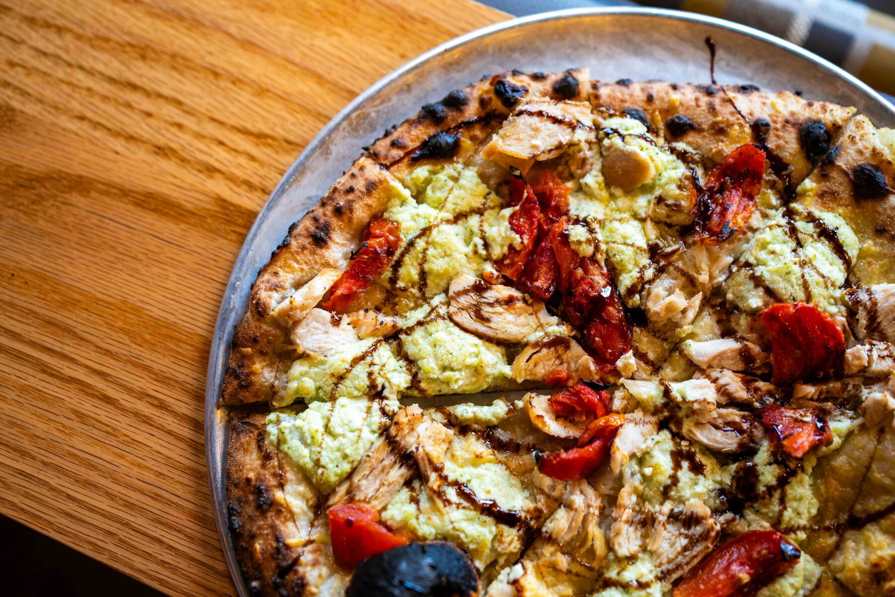 Lemon Olive Oil, Parmesan Cheese, Smoked Chicken, Roasted Tomatoes, Pesto Ricotta Soprafina, Balsamic Glaze. 23
