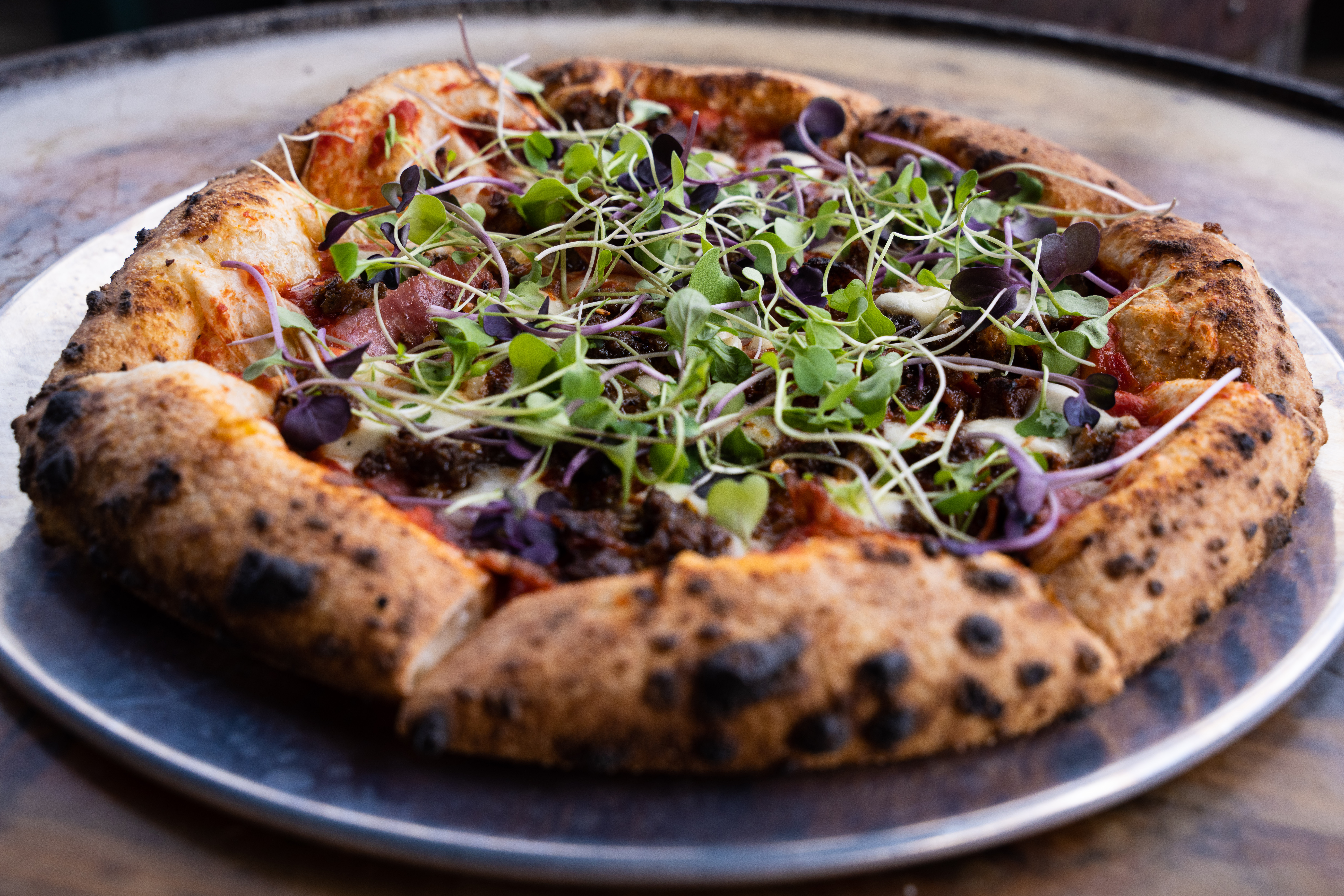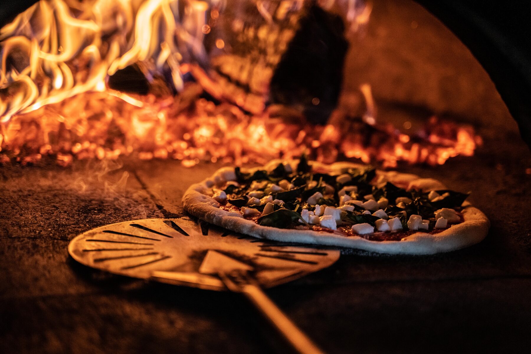 It starts with an 800° fire in our custom made forno bravo oven burning 3 year old select red oak and ash. Our wood-fired pizzas pay homage to the original style pizza, the neapolitan originally created in naples, italy. We import organic winter wheat from farms in italy, ferment and proof the dough over 24 hours and add simple, fresh organic vegetables and ingredients available.Our red sauce is made using the highest quality organic san marzano tomatoes,and we select artisan meats and cheeses.
